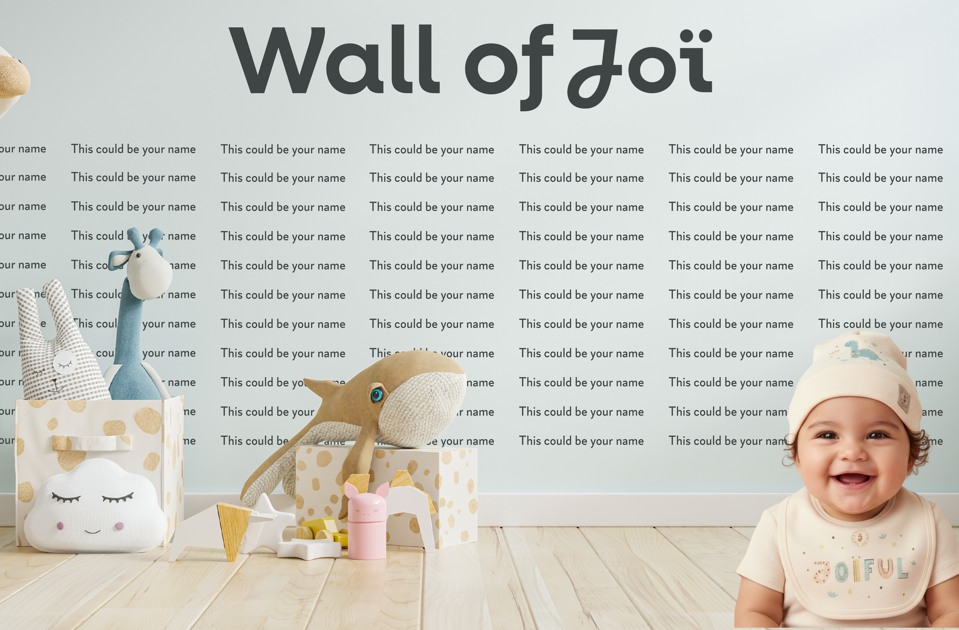 Join us in building something beautiful. The Wall of Joï is our way of honoring the people who believed in us from the beginning. With a $100 contribution, your name will be added to our digital Wall of Joï as a founding supporter, helping us bring this brand to life and spread more love, joy, and connection to families everywhere.
